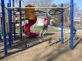 In between Cara's 2nd and 3rd game last Sunday, Justin, Ashlin and I headed to the park. They can only take so much time sitting in a gym, plus the weather was 84 degrees outside. It was sunny and very windy. The Pierce park has some great newer playground equipment and they were content to play for a little bit.