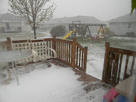 We experienced such a mild winter here in Nebraska this year that you just knew that we would get a BIG spring storm. We did not get hardly any snow this winter and the temperatures were above normal. The BIG storm hit this last Saturday afternoon. We had spent the morning at a 4-H meeting and at two soccer games. The sky started to get really dark during the last game and the wind had really picked up toward the end. I was glad to get home. Then about 1:30 p.m. it started to rain and shortly after the hail started.